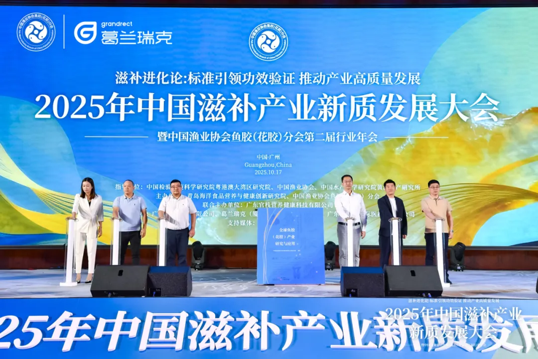 10月17日,备受瞩目的“2025中国滋补产业新质发展大会”暨中国渔业协会鱼胶(花胶)分会第二届行业年会在广州圆满举行。本次大会以“科学循证引领鱼胶产业升级”为主题,聚焦标准化建设、科技赋能与市场创新,为鱼胶(花胶)产业高质量发展绘制新蓝图。